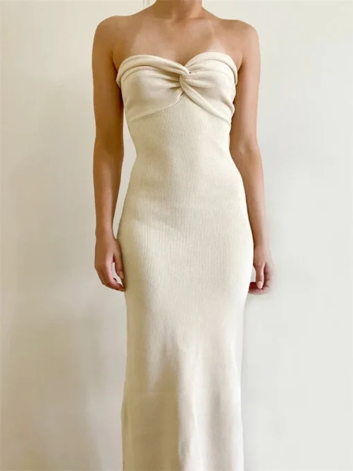 Summer Women Tube Top Dress Solid Color Strapless Sleeveless Backless Midi Dress Y2K Aesthetic Cocktail Party Sexy Dresses