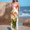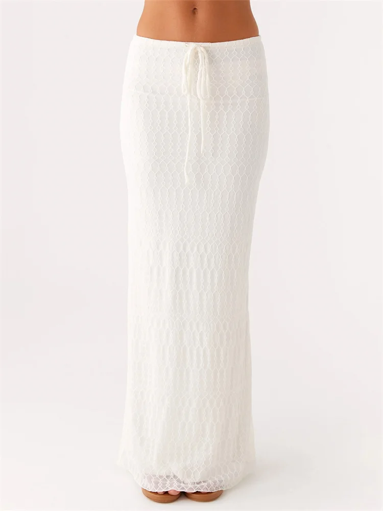 Summer outfit for women in solid colors; Women’s bandeau with drawstring front, strapless, crop length; Women’s skirt with elastic waist and drawstring, ankle length to show off your charming curves