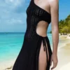 Womens Beach Cover Up Dress Sleeveless One Shoulder Knit Crochet Bikini Cover Up Bathing Suit