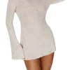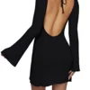 Women’s Fall Mini Dress Long Sleeve Open Back Solid Color Knit Dress Sexy Casual Sweater Dresses