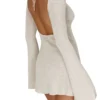 Women’s Fall Mini Dress Long Sleeve Open Back Solid Color Knit Dress Sexy Casual Sweater Dresses